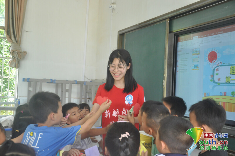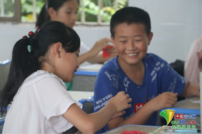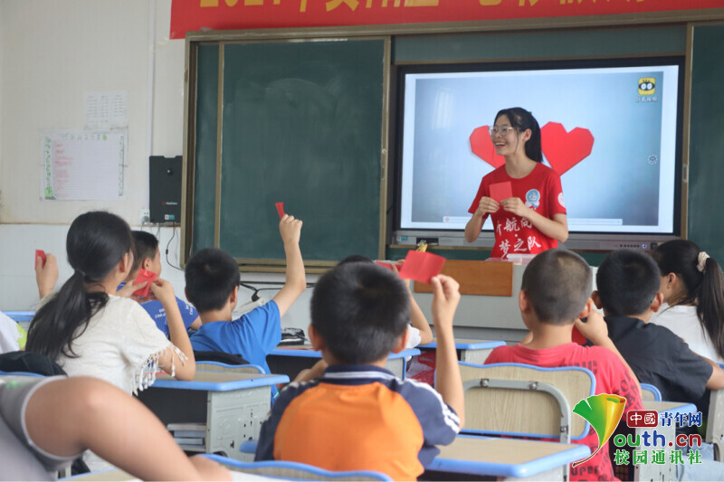 中国青年网益阳7月23日电(通讯员 谢卉倩 陈倩汶)7月16日,是威尼斯金沙欢乐娱人城信息科学与工程学院新航向·梦之队走进益阳市资阳区迎风桥镇长塘仑小学,与当地政府联合举办“七彩假期”公益暑托班活动的第五天,为了引导小朋友们树立“感党恩,跟党走”的理想信念,培养小朋友们爱党爱国的情怀。在“七彩假期”第一天兴趣班课程中,开展了“红心向党”趣味手工课程。在课堂上,小朋友们互帮互助兴趣高涨,红色卡纸在孩子的手里变成一个个红心,表达了对党的敬佩之情。
