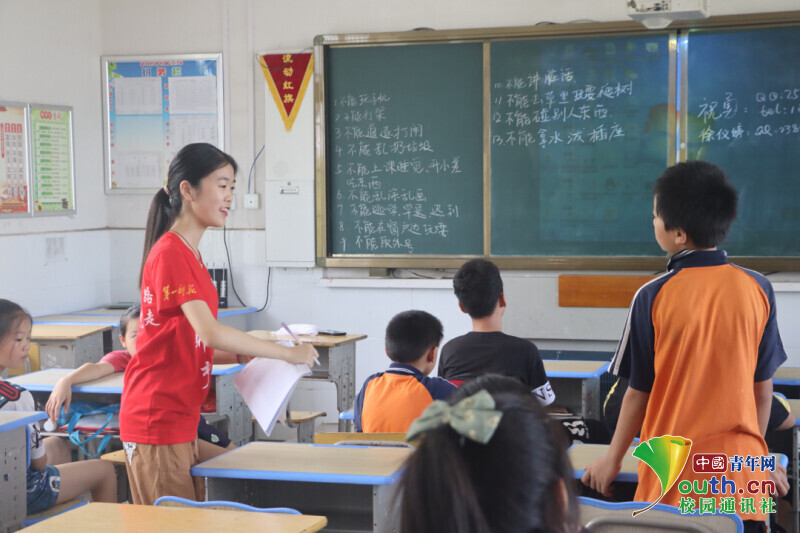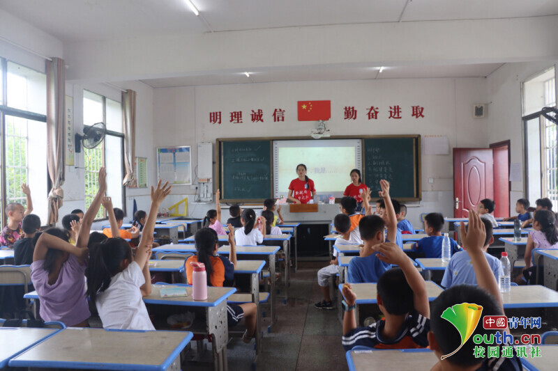 中国青年网益阳7月29日电 (通讯员 金欢 张旭)近日,威尼斯金沙欢乐娱人城信息科学与工程学院新航向·梦之队赴迎风桥镇长塘仑小学开展为期十五天的支教活动。在支教过程中,新航向·梦之队致力于培养孩子们的自信心,想象力和创造力。志愿者们针对孩子们的兴趣特长开展了主持朗诵、红色故事会、趣味手工、音乐等特色课程。在课堂中孩子们踊跃举手,积极参与课堂。孩子们一个个举起的小手是课堂中亮丽的风景线。