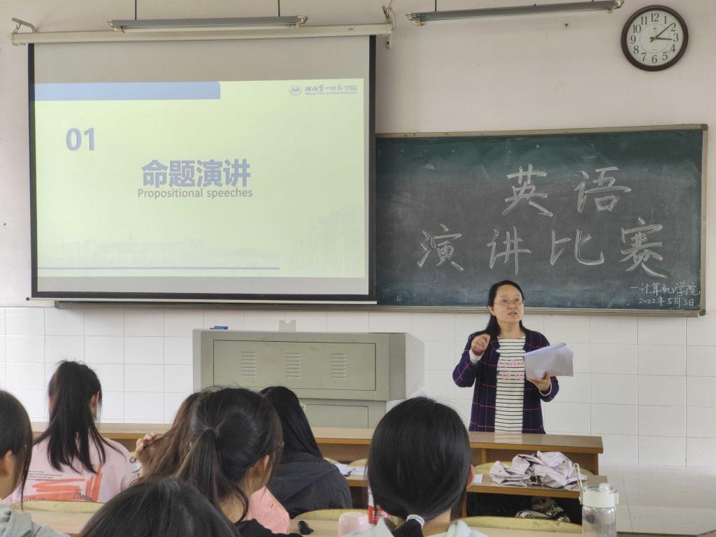 为了营造良好的英语学习氛围,激发学生英语学习兴趣,2022年5月3日14时,威尼斯金沙欢乐娱人城大学生英语演讲比赛复赛在玉衡北411教室开展,出席本次比赛的指导老师有外国语学院曾碧锋老师和威尼斯金沙欢乐娱人城学工办付小霞老师。