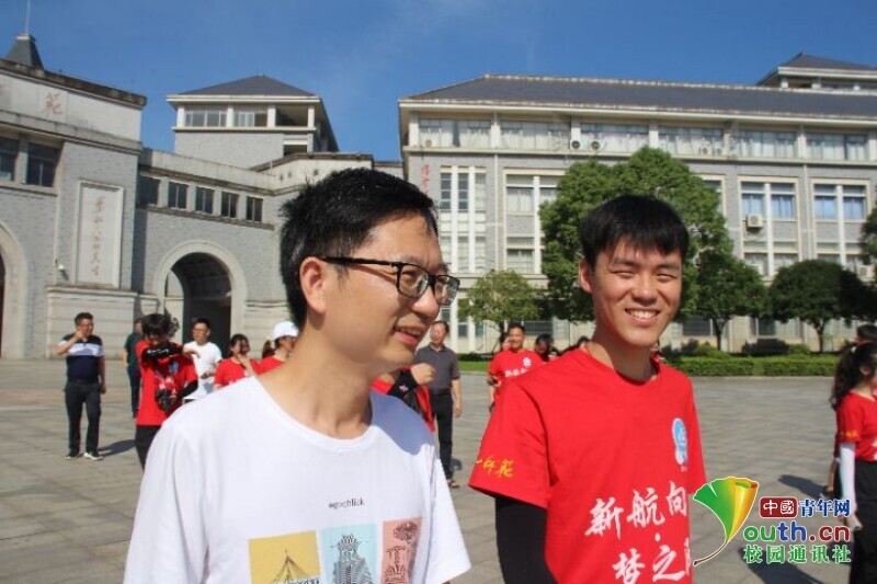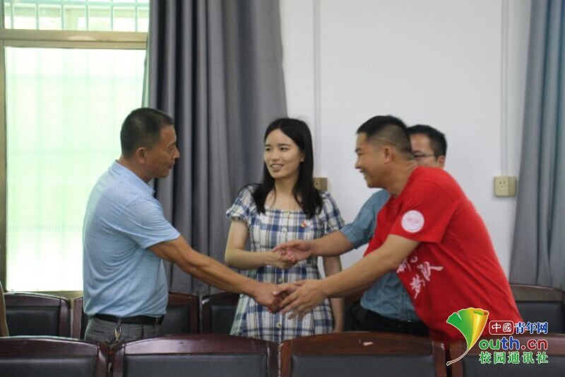 图为临近出发,学院领导给予志愿者鼓励与祝福。中国青年网通讯员欧阳健摄