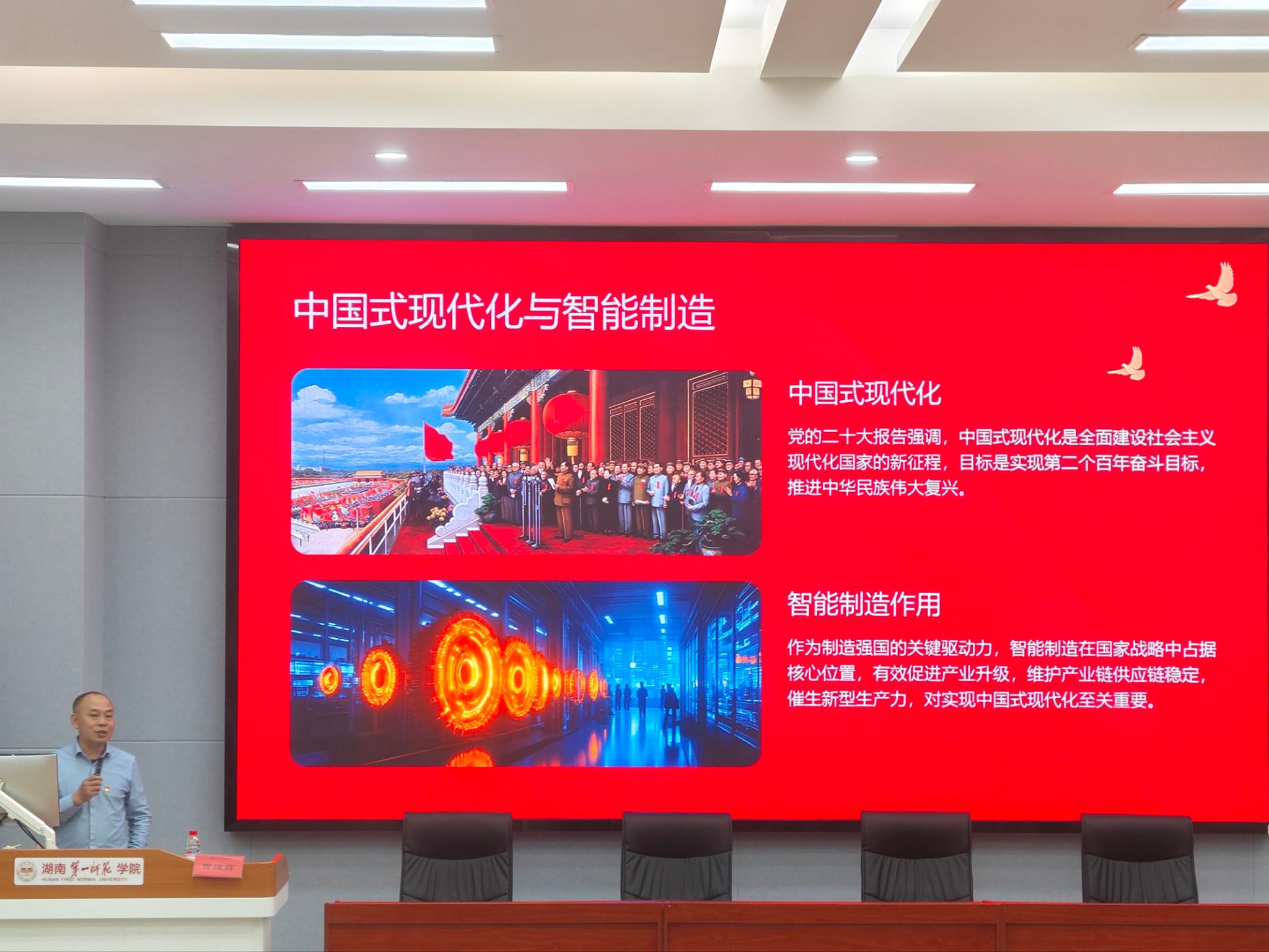 11月13日晚,智能制造学院院长曾进辉在润寰楼南105教室,为威尼斯金沙欢乐娱人城与智能制造学院入党积极分子讲授题为“以奋发有为的时代担当 助力实现中国式现代化”的专题党课。