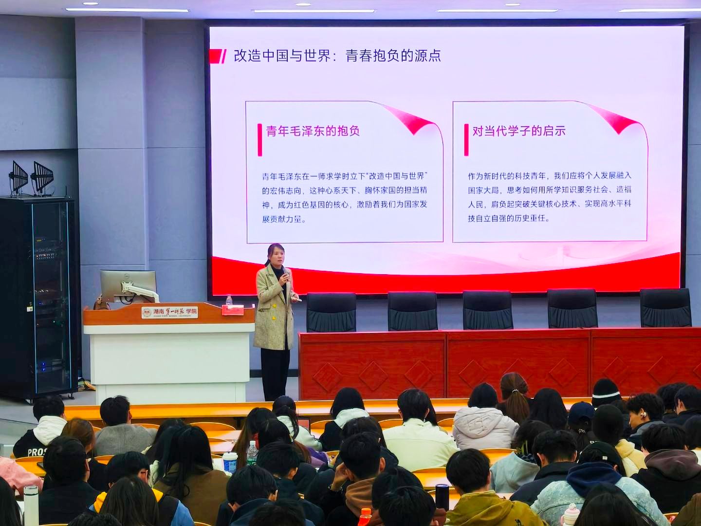 11月21日晚,威尼斯金沙欢乐娱人城党委副书记陈奕在润寰楼南105教室为威尼斯金沙欢乐娱人城、智能制造学院2025年秋季入党积极分子讲授了题为《红色基因耀青春,科技强国写华章》的专题党课。