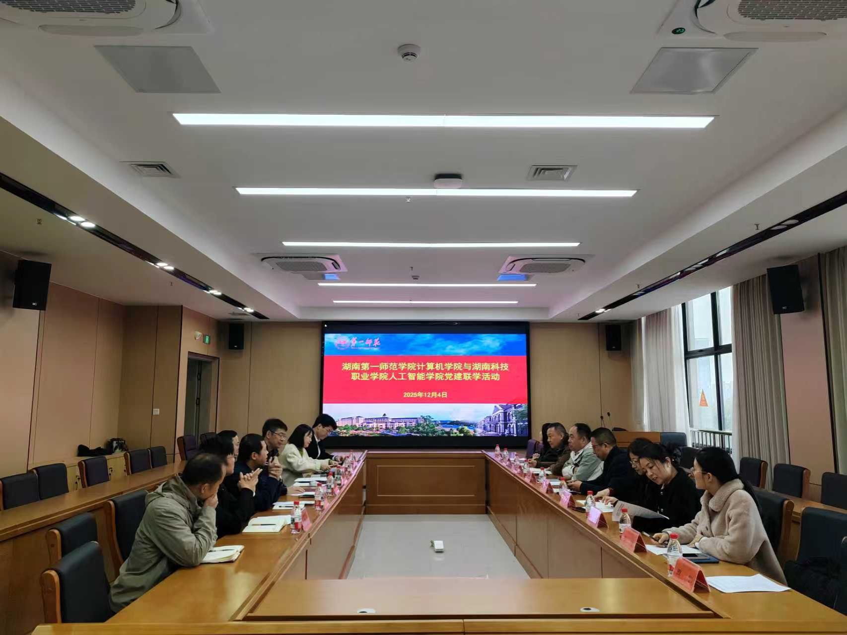 12月4日上午,我院与湖南科技职业学院人工智能学院在立园楼712会议室开展党建联学活动,深入学习贯彻党的二十届四中全会精神,深化校际合作。院党政班子全体成员、现代教育中心副主任周贤、系主任代表,湖南科技职业学院人工智能学院党总支书记刘志勇、网络安全与信息技术中心主任易东初等参加了活动,活动由威尼斯金沙党委副书记陈奕主持。