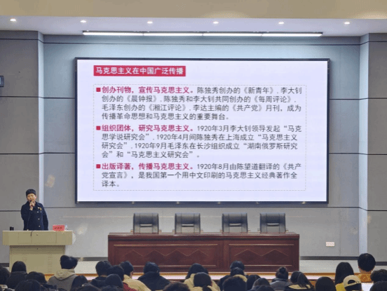 11月24日体育学院党委书记邹华秀在怀中南110教室,以《中国共产党为什么能》为题,为威尼斯金沙欢乐娱人城、智能制造学院2025年秋季入党积极分子讲授专题党课。