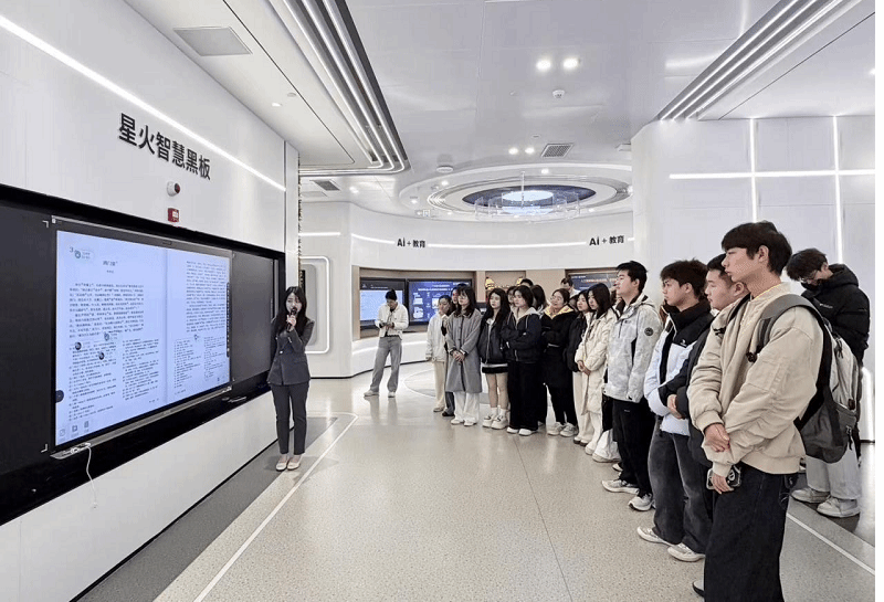 科大讯飞长沙总部的人工智能展厅则为学生开启沉浸式体验之旅。讲解人员依托“AI+生活”“AI+教育”“AI+医疗”“AI+工业”“AI+城市”五大主题展区,生动展示人工智能技术在不同场景的创新应用。学生近距离体验智能语音交互系统、智慧教育平台及医疗影像辅助诊断系统等前沿应用,切身感受技术创新对产业升级的驱动效应。